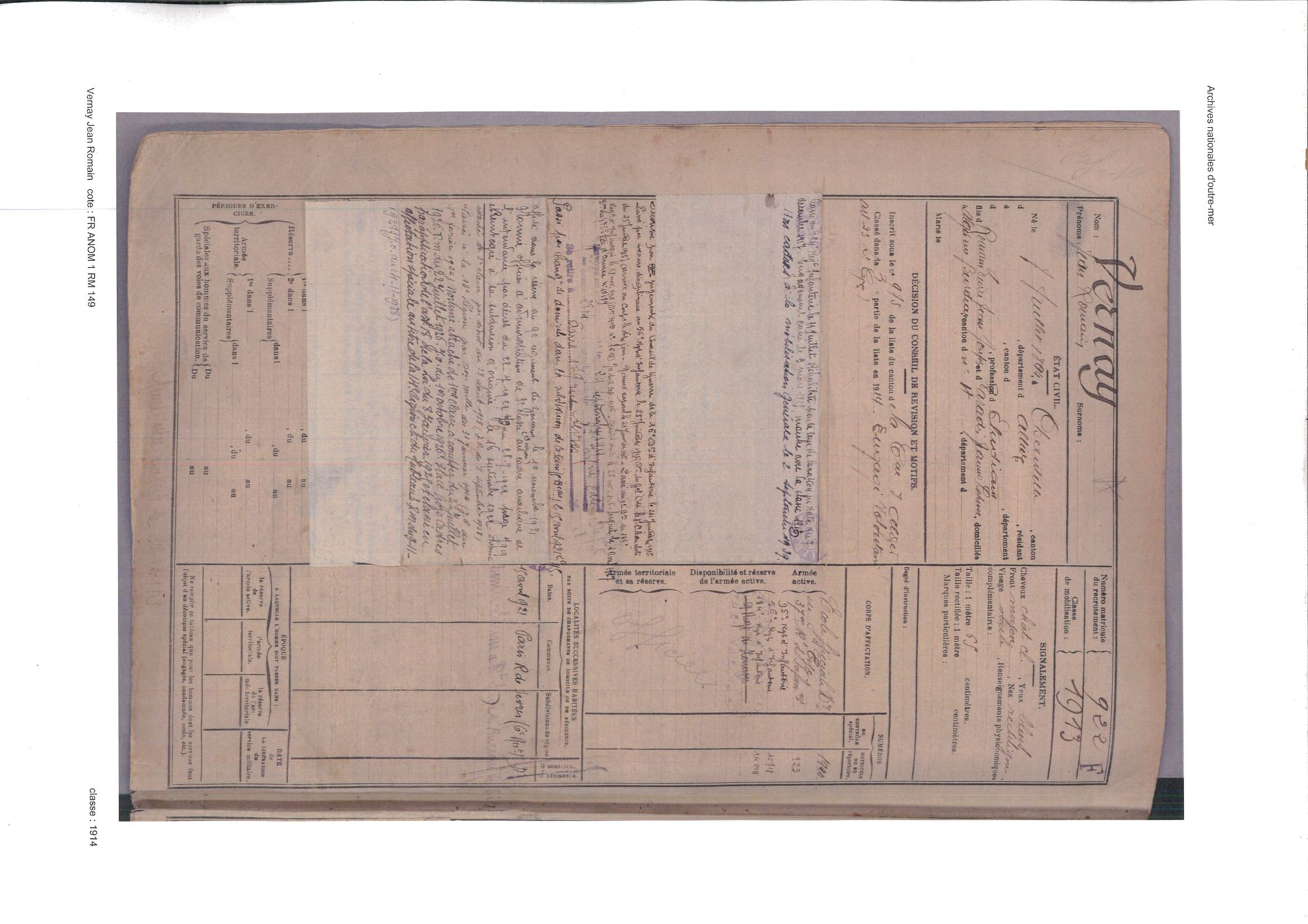 Jean Vernay est né à Chantelle le 7 juillet 1894. Il est le fils de Jeanne Paradis, épouse Vernay et de Romain Vernay, lieutenant au premier Régiment du Génie de Versailles. En 1914, à tout juste 20 ans, il sort de l’Ecole Spéciale Militaire de Saint-Cyr avec le grade de sous-lieutenant. (voir registre matricule)