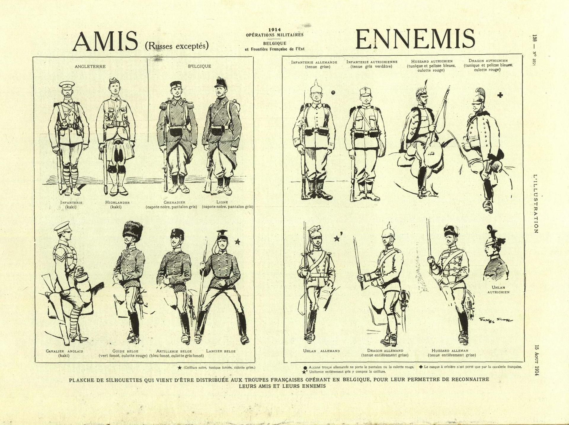 Durant l’été 1914, tous les états-majors misent sur des stratégies offensives. En septembre, les troupes allemandes sont à cinquante kilomètres de Paris. Après la bataille de la Marne du 6 au 13 septembre, elles sont repoussées sur l’Aisne. En novembre, le front se stabilise et le conflit se transforme en une guerre de positions.