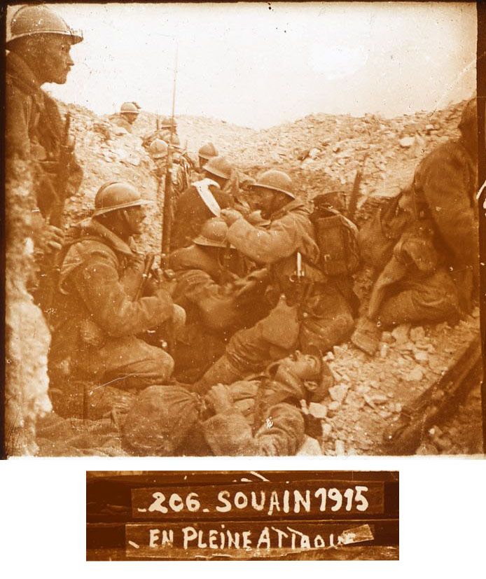Après l’échec des offensives de l’été 1914, l’illusion d’un conflit de courte durée a vécu. La guerre qui commence est une guerre de siège à grande échelle. Elle donne lieu à des combats d’artillerie d’une violence extrême qui entraînent des blessures nouvelles et des destructions considérables. Les combattants terrés dans leurs tranchées subissent des bombardements terrifiants, dont l’objectif est la destruction des défenses de l’ennemi et la préparation des offensives. Les soldats découvrent une expérience combattante nouvelle, brutale et déshumanisante.