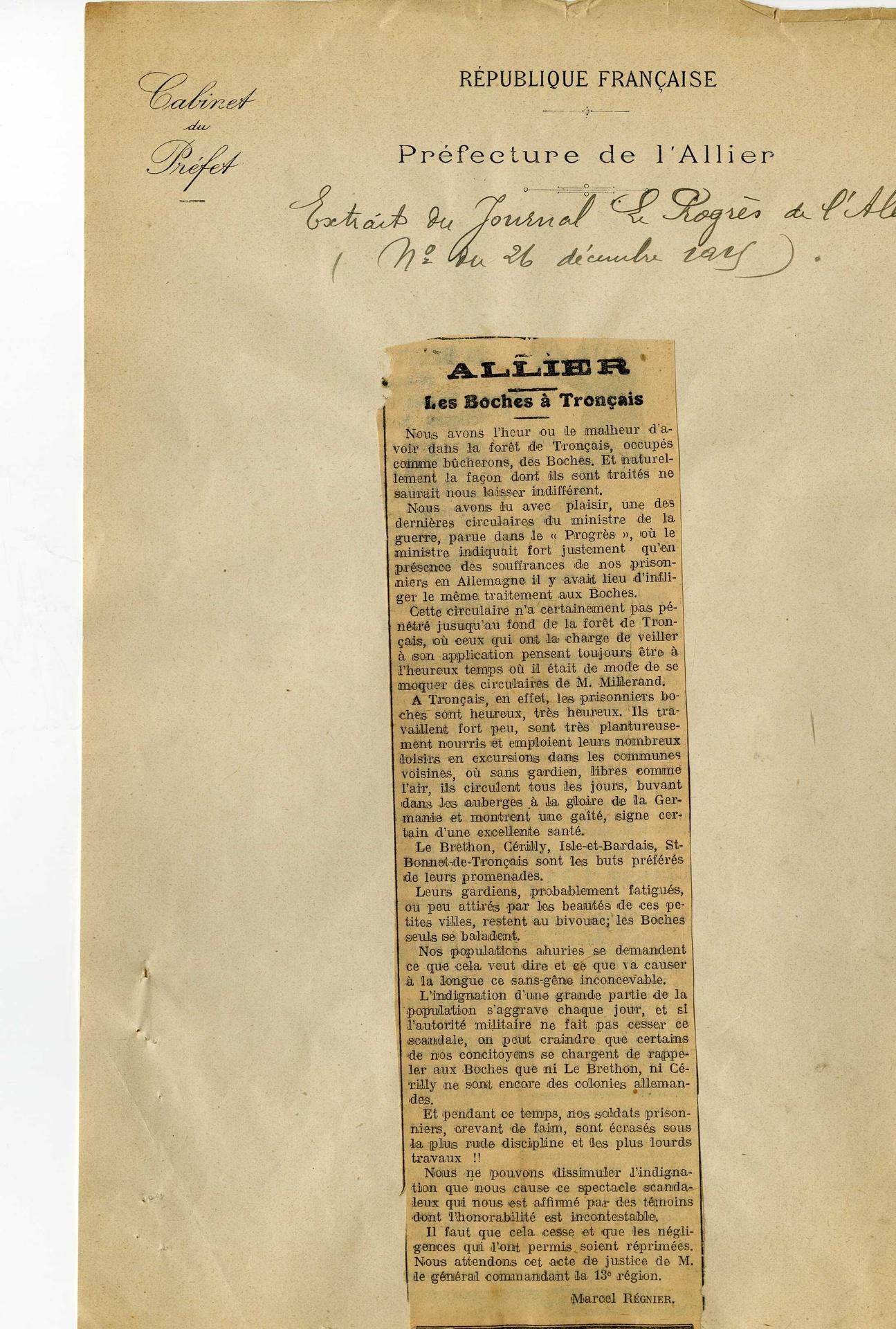 Si de nombreux Bourbonnais sont détenus sur le territoire allemand, à l’inverse, des prisonniers de guerre allemands sont présents dans le département de l’Allier. Ils travaillent dans des exploitations forestières ou industrielles, ou encore dans des sablières comme à Chavennes, près de Moulins.
