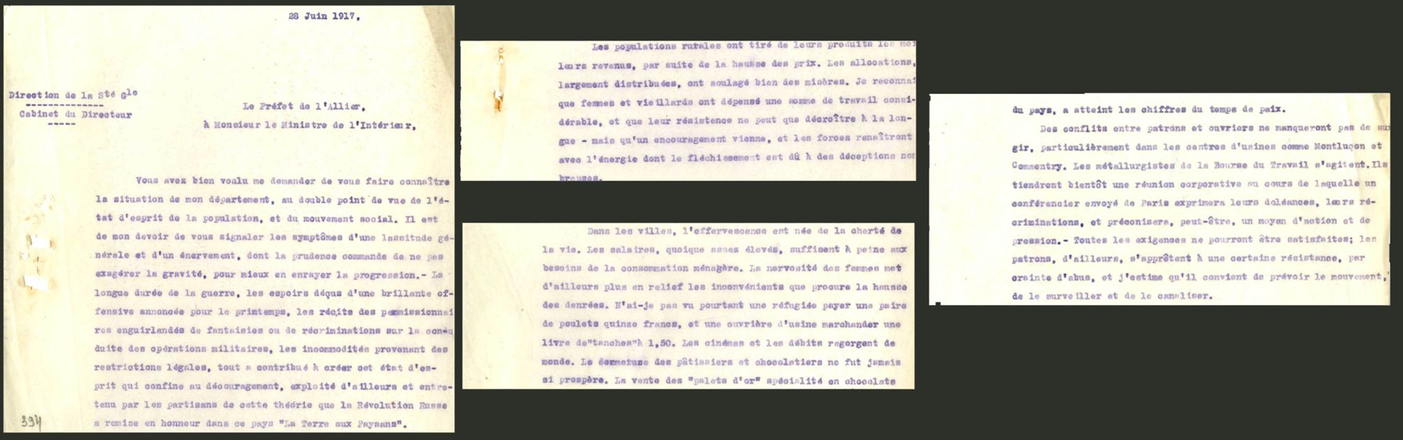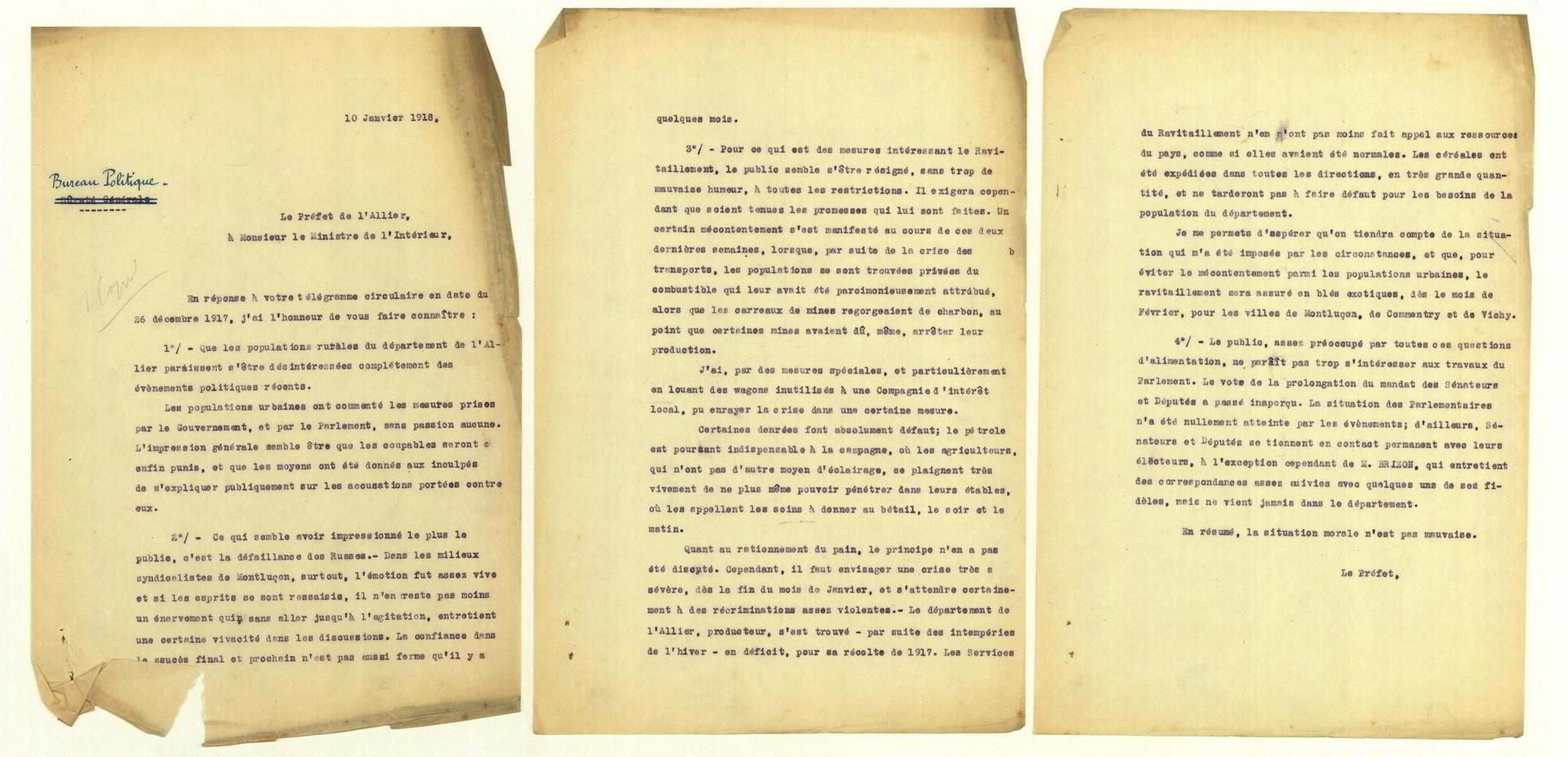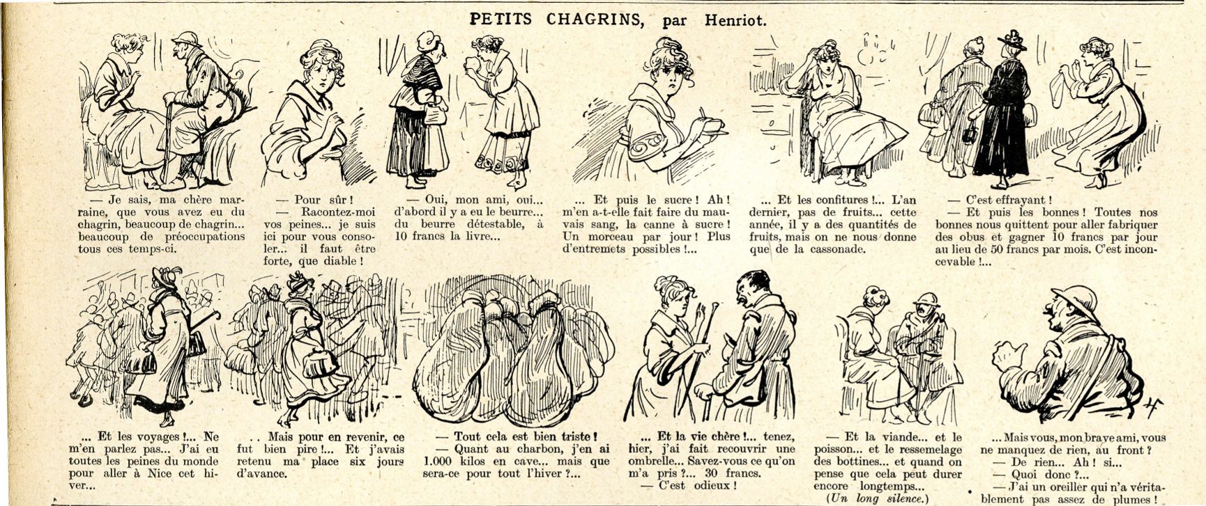 Toute l’énergie des belligérants étant tournée vers l’effort de guerre, l’existence quotidienne de la population civile est rendue difficile par la hausse des prix, l’augmentation de la durée du temps de travail ou la réquisition des chevaux. Les Français sont particulièrement touchés par la pénurie de charbon qui est réservé en priorité à l’industrie. Dès 1915, des denrées alimentaires essentielles comme le pain et le sucre sont rationnées. Le gouvernement met en place un système de tickets attribuant à chacun selon son âge, sa situation professionnelle et familiale, une quantité ou un volume défini à percevoir.