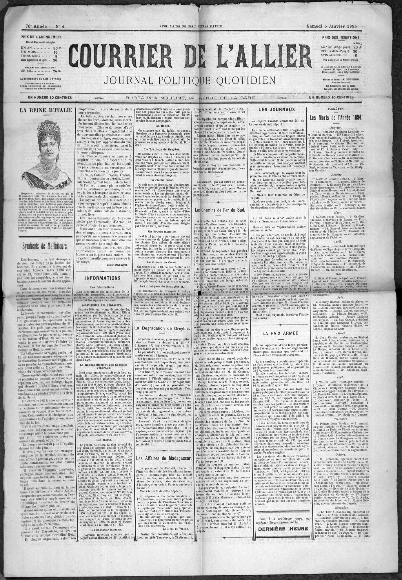 - 1894 : arrestation et condamnation d'Alfred Dreyfus