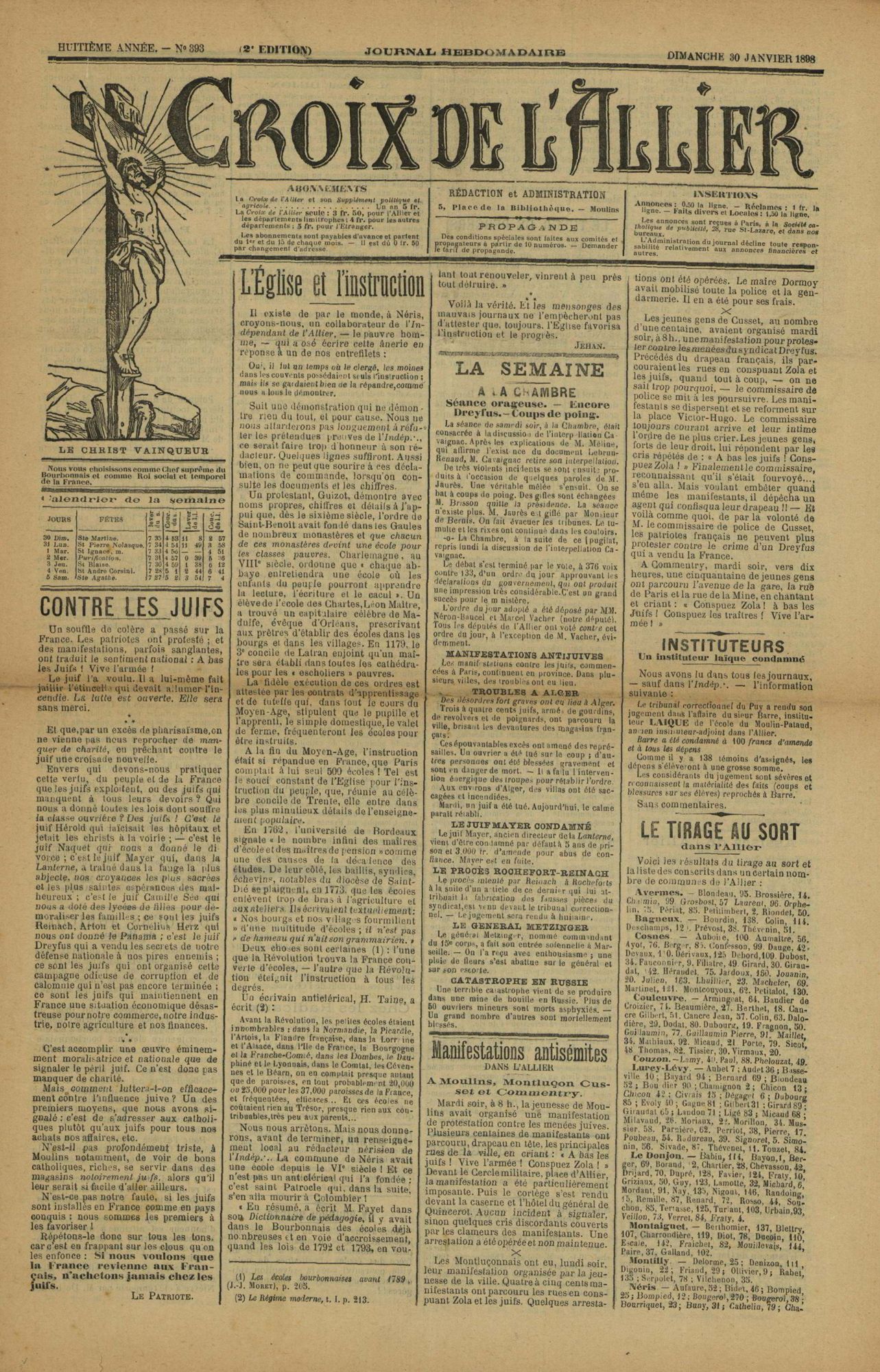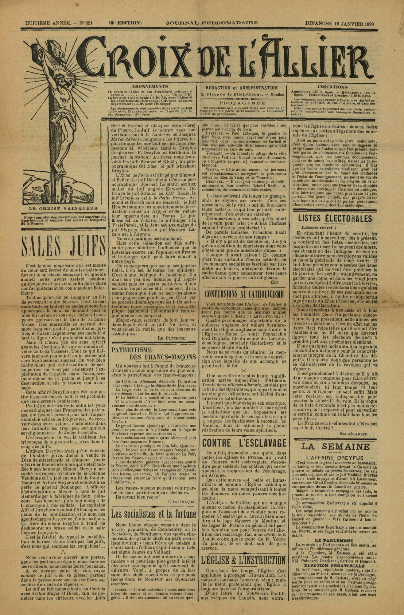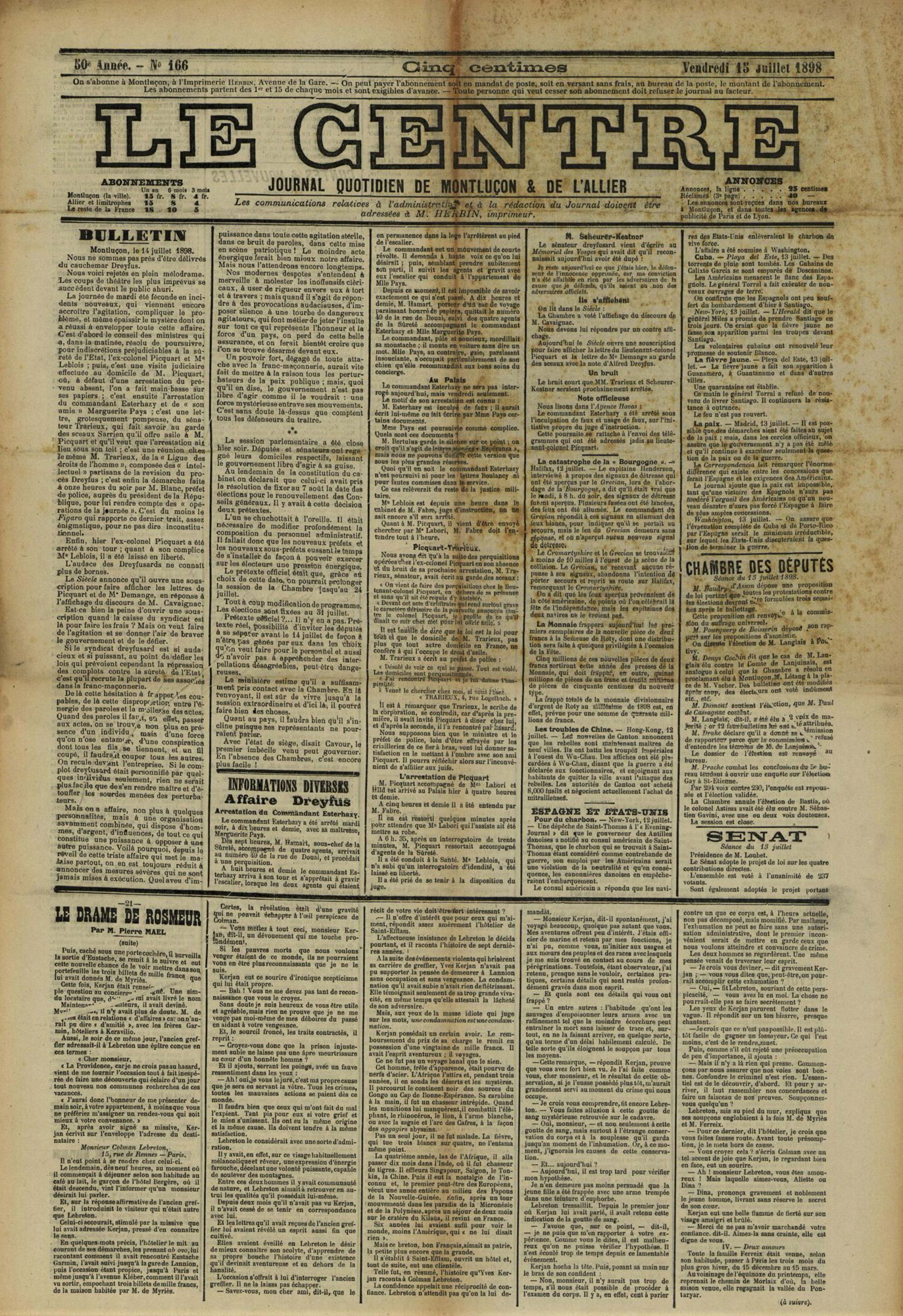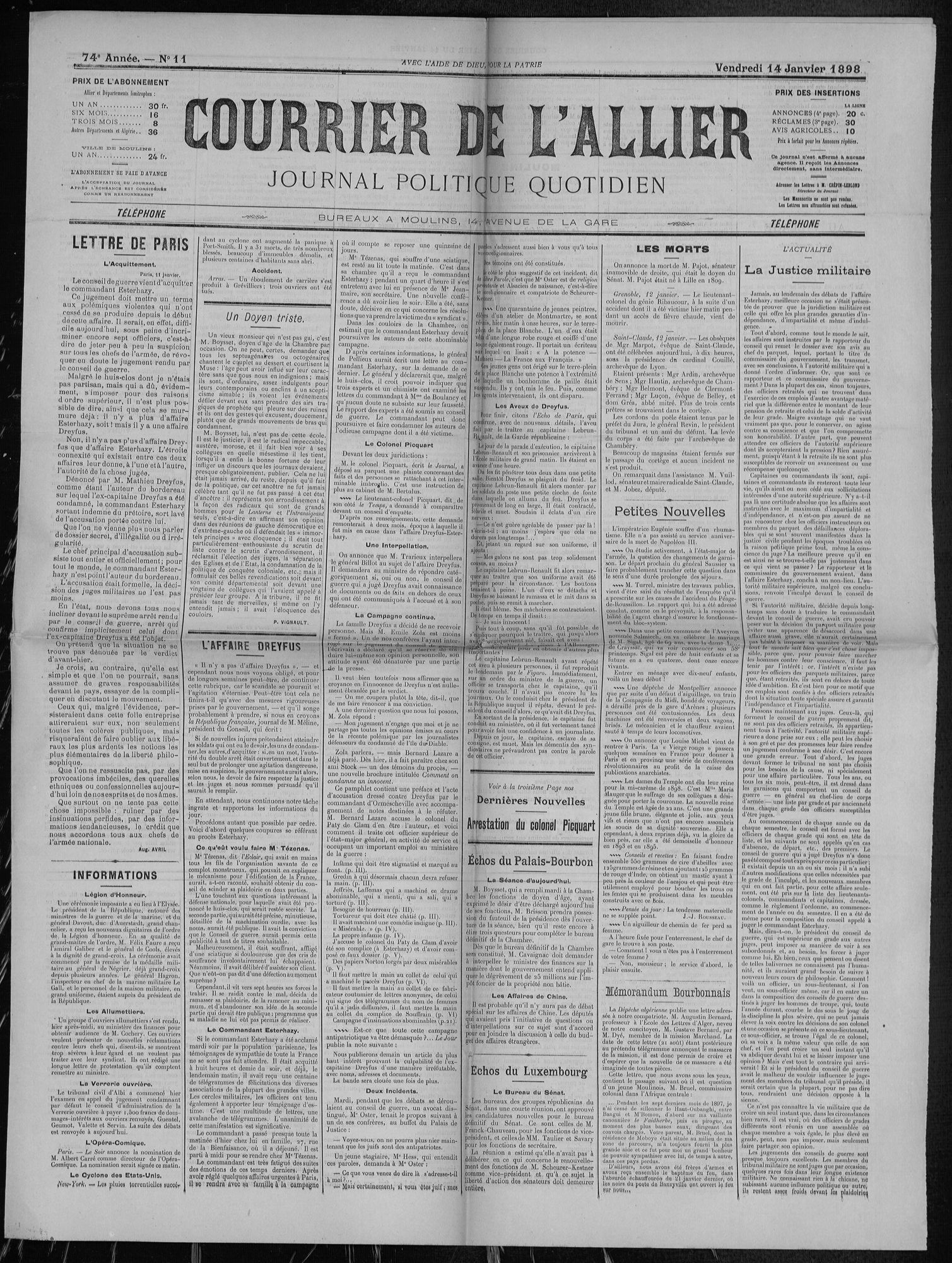 - 1898 : publication dans l'Aurore de « J'accuse !... » par Émile Zola