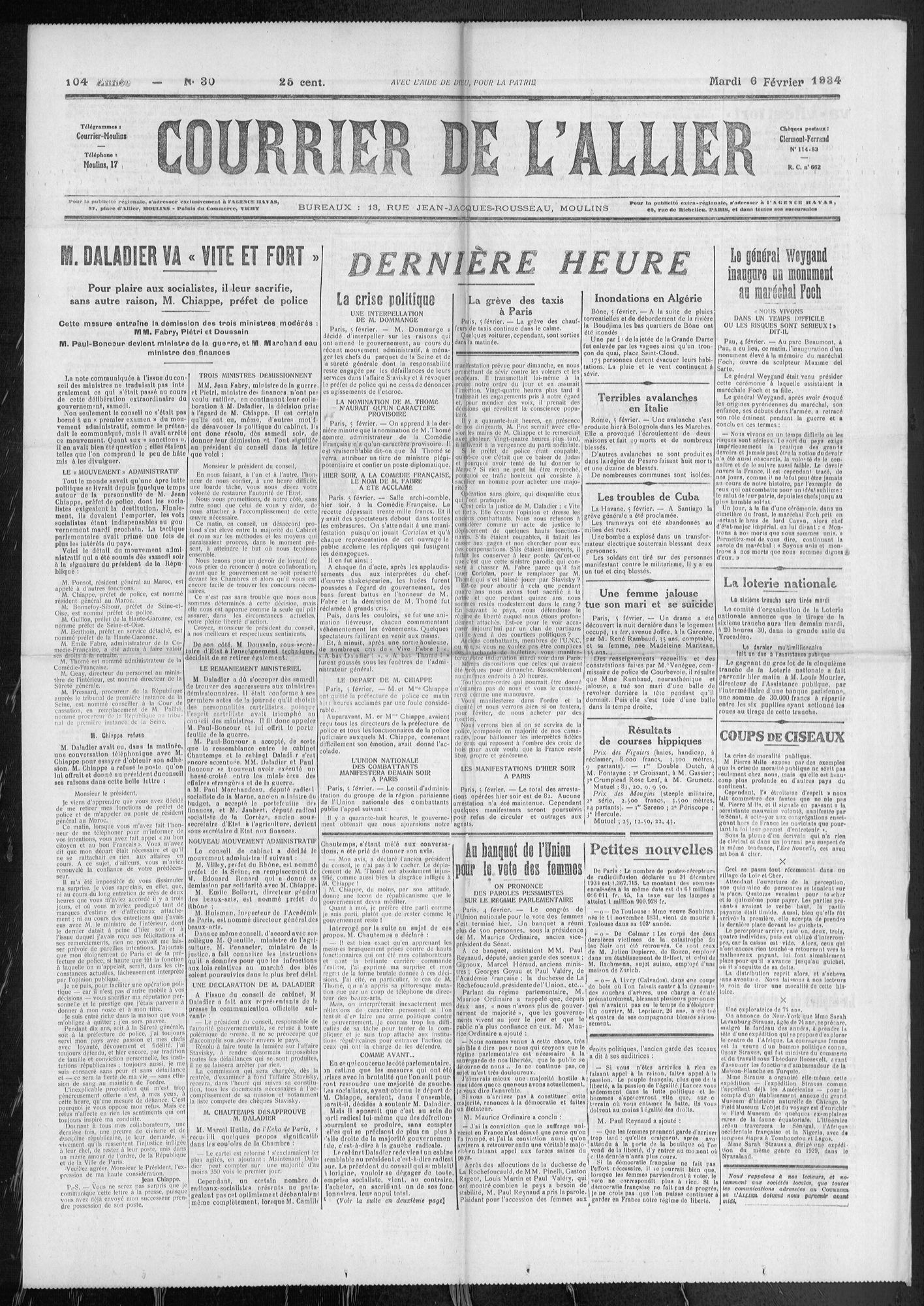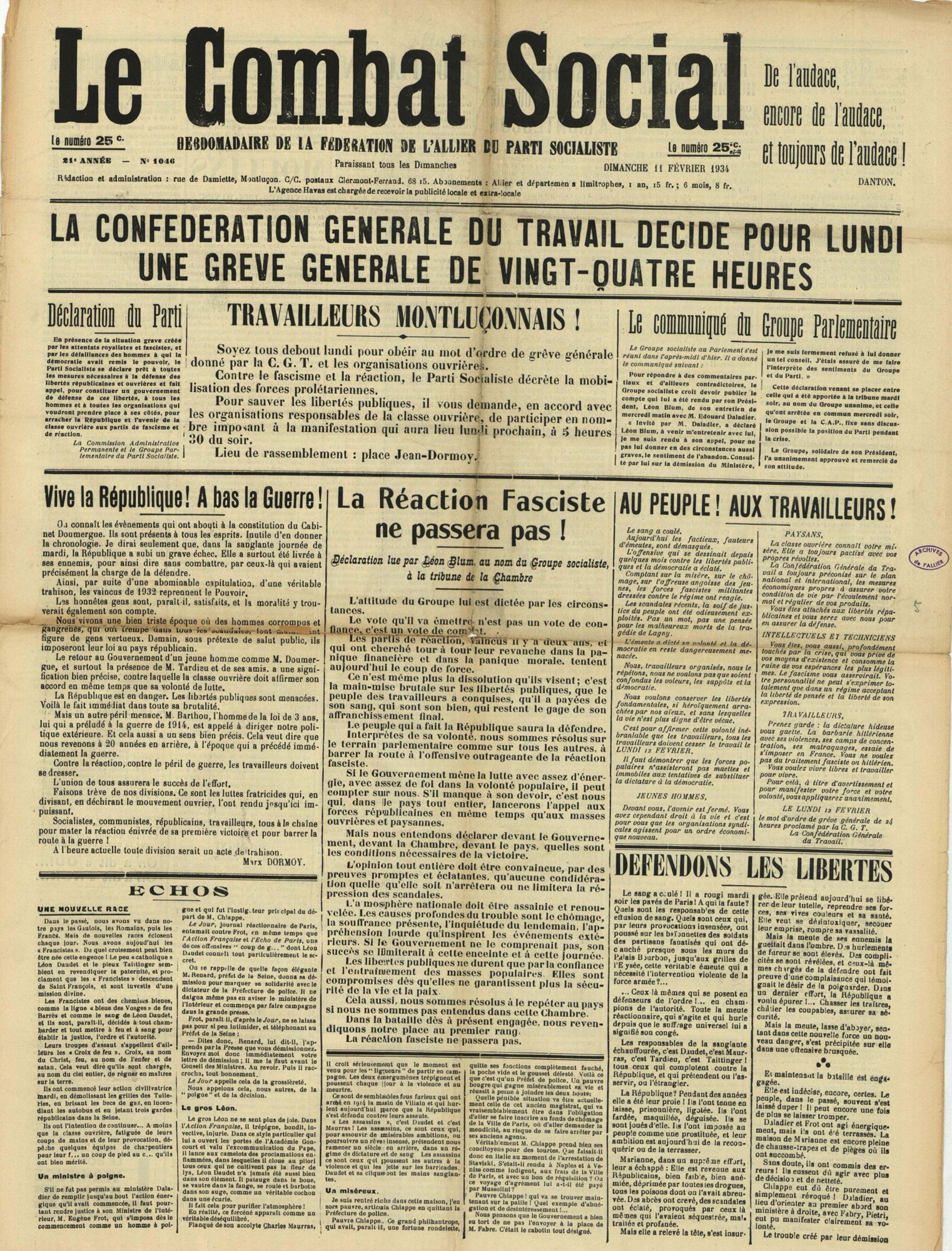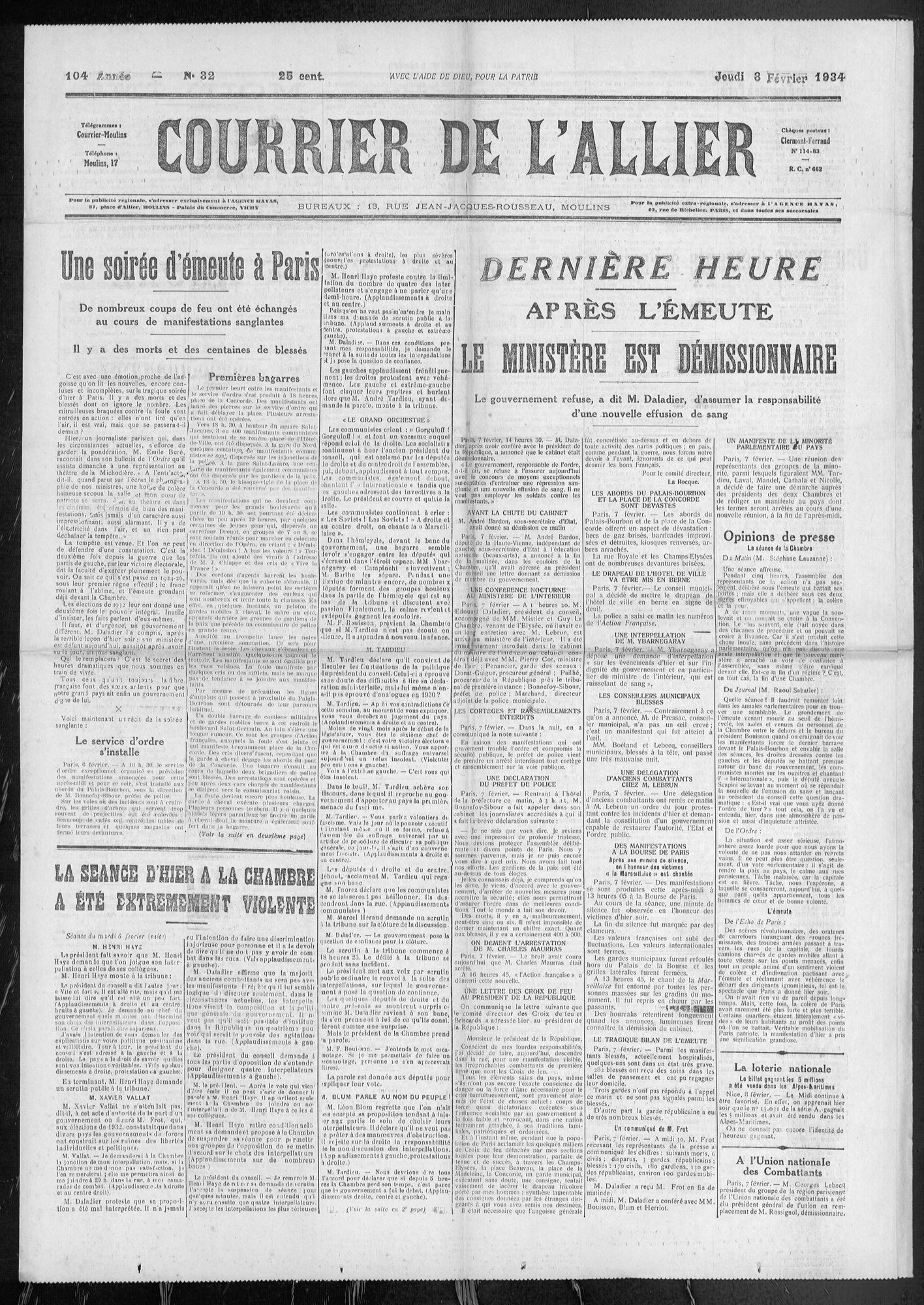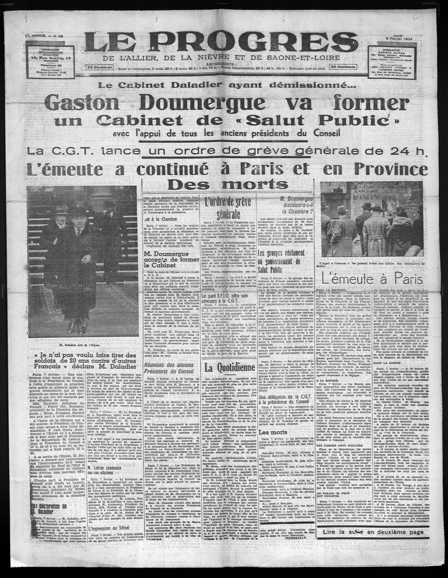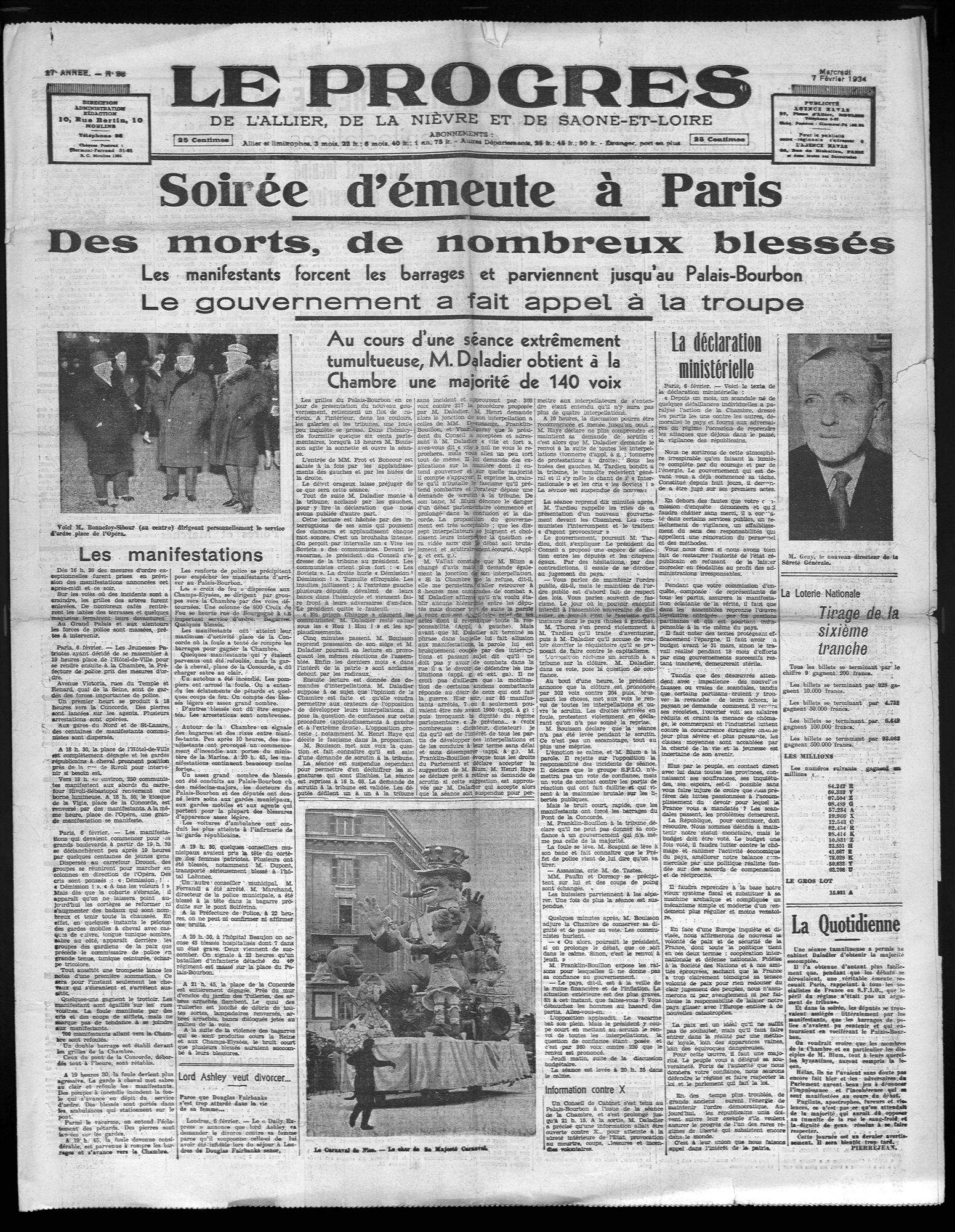 Les évènements du 6 février 1934 sont le point d’orgue d’une série de manifestations parisiennes orchestrées par les ligues d’extrême droite au cours du mois précédent. Le 27 janvier, à la suite d’une manifestation particulièrement violente, le président du Conseil Camille Chautemps présente sa démission. Il est remplacé par Edouard Daladier qui décide de limoger le préfet de police de Paris Jean Chiappe, réputé pour son indulgence vis-à-vis des ligues. Les organisations contestataires les plus puissantes appellent alors à une grande manifestation de protestation programmée pour le 6 février, jour de la présentation par Daladier de son gouvernement à la Chambre des députés. Plusieurs cortèges disjoints conduits par différentes ligues, mais aussi par des associations d’anciens combattants de droite comme de gauche, convergent vers la place de la Concorde et la Chambre des députés, au soir du 6 février. Dans la soirée, la manifestation tourne à l’émeute et à l’affrontement.les forces de l’ordre 15 personnes trouvent la mort et 1435 autres sont blessées. Dans les jours et les semaines qui suivent, l’événement fait la une des journaux et réactive les clivages partisans.