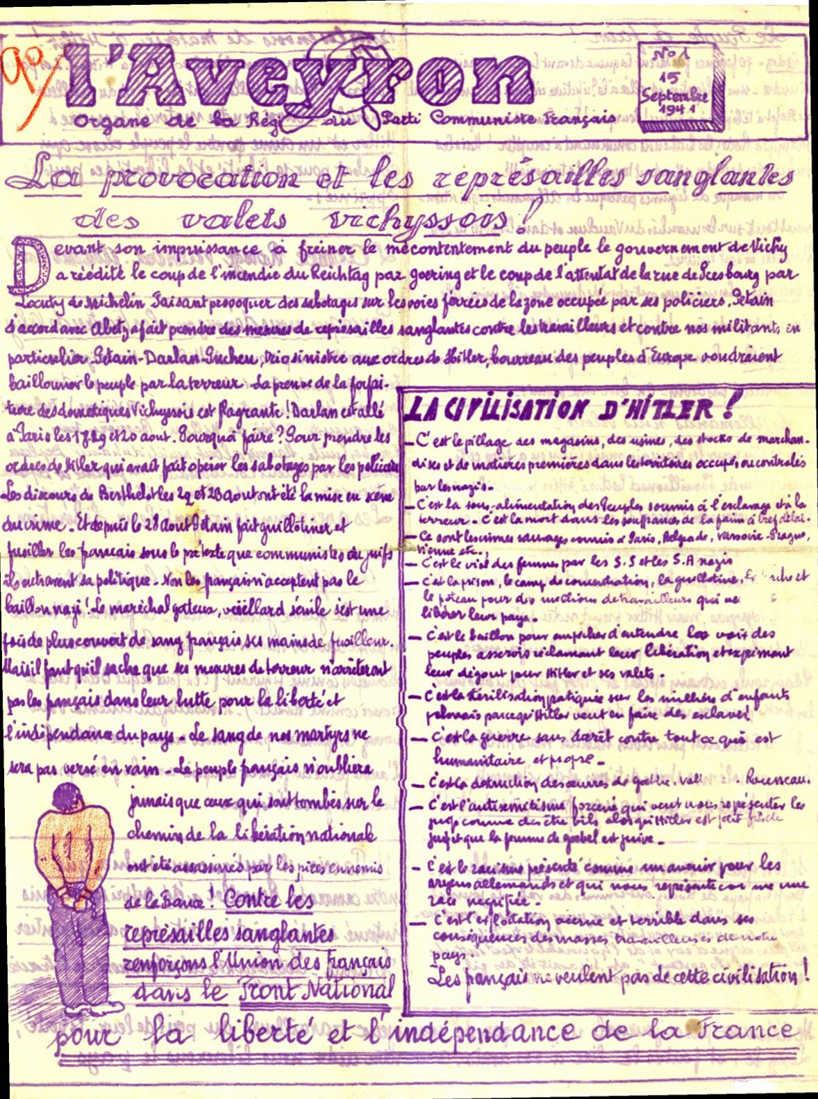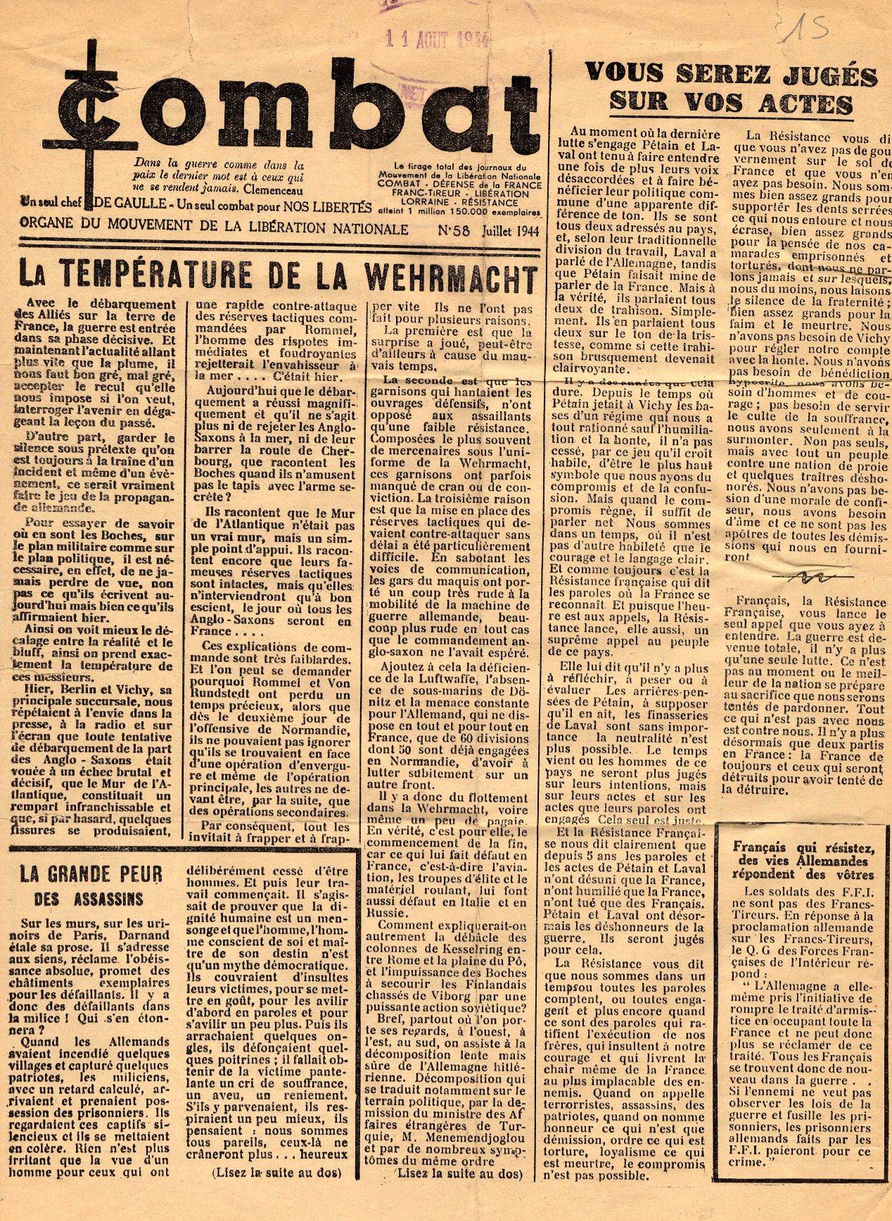 Une presse clandestine se développe dans la Résistance. Elle nait d’actions individuelles isolées, de la volonté de donner une information différente de celle de la propagande de Paris ou de Vichy. Du fait du manque de moyens, les premiers numéros sont ronéotypés ou dactylographiés. Certains ont une durée de parution limitée, tandis que d’autres voient leur tirage et leur diffusion augmenter grâce aux ressources financières de la France Libre. Ainsi, le tirage de Combat passe de 40 000 exemplaires en 1942 à 250 000 en 1944. Pour les Résistants, le risque est énorme. Une ordonnance allemande du 18 décembre1942 précise que « quiconque aura confectionné ou distribué des tracts sans y être autorisé sera puni de la peine de travaux forcés ».